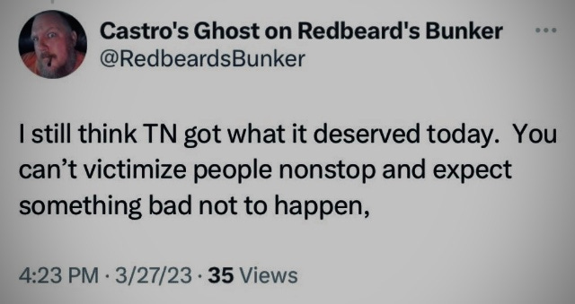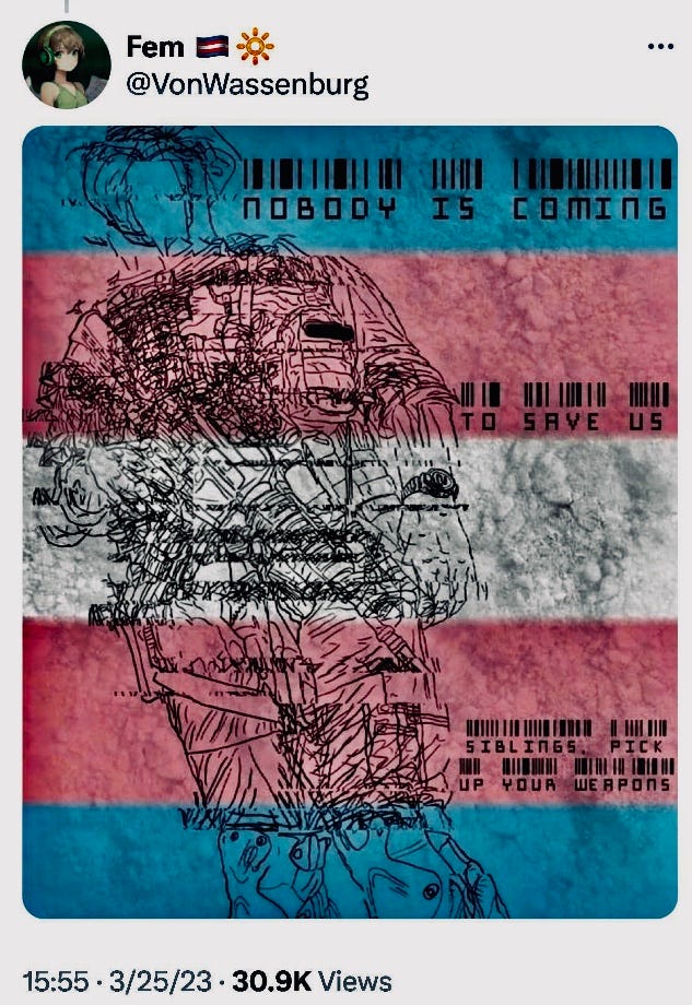 Insular communities online can breed extremism we all know. This can be true for any group anywhere. What happens though when an insular echo chamber sees any different or dissenting views actual violence against them? Who are so psychologically fragile that the willful or inadvertent misgendering of a person is interpreted as an act of violence? What do you get when everyone in your bubble is reporting that they are being violently attacked on a somewhat regular basis? Increasing extremism in such a community should come as a surprise to no one.